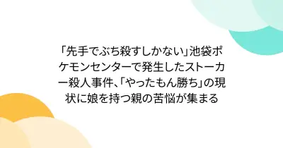 「先手でぶち殺すしかない」池袋ポケモンセンターで発生したストーカー殺人事件、「やったもん勝ち」の現状に娘を持つ親の苦悩が集まる