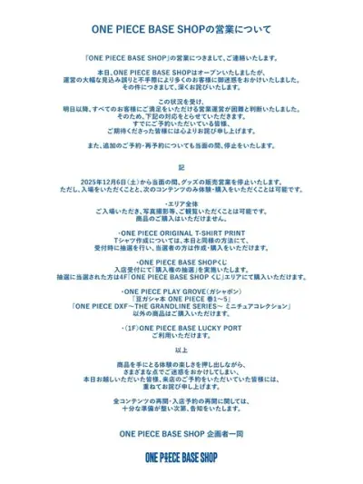 【悲報】ワンピース公式ショップ、客が全く捌けず明日から営業中止