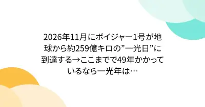 2026年11月にボイジャー1号が地球から約259億キロの”一光日”に到達する→ここまでで49年かかっているなら一光年は…