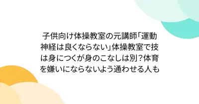 子供向け体操教室の元講師「運動神経は良くならない」体操教室で技は身につくが身のこなしは別?体育を嫌いにならないよう通わせる人も