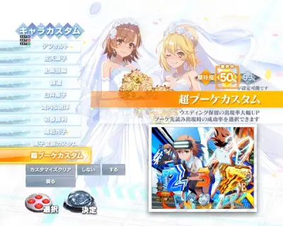【朗報】藤商事開発ボイスにてスマパチ超電磁砲の隠しカスタム「超ブーケカスタム」の情報が公開!ウエディング保留出現率が50%、99%から選べるようになるぞ!