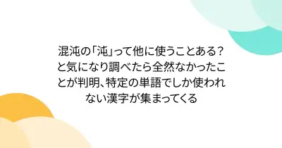 混沌の「沌」って他に使うことある?と気になり調べたら全然なかったことが判明、特定の単語でしか使われない漢字が集まってくる