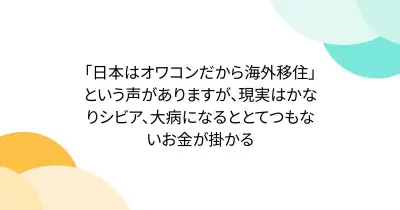 「日本はオワコンだから海外移住」という声がありますが、現実はかなりシビア、大病になるととてつもないお金が掛かる
