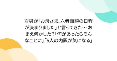 次男が「お母さま、六者面談の日程が決まりました」と言ってきた… おまえ何かした?「何があったらそんなことに」「6人の内訳が気になる」