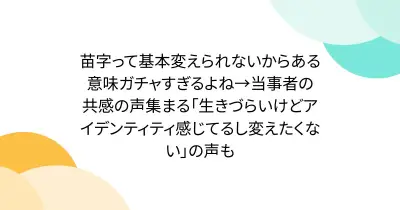 苗字って基本変えられないからある意味ガチャすぎるよね→当事者の共感の声集まる「生きづらいけどアイデンティティ感じてるし変えたくない」の声も