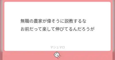 農家をやっているが、「無職の農家が偉そうに説教するな」と言われた… “無職の農家”でだめだった「5文字で矛盾」「『会社に行かないヒトは皆無職』 的な考え?」