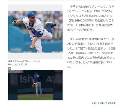 【朗報】DeNAケイ、ホワイトソックスと2年1200万ドルで契約