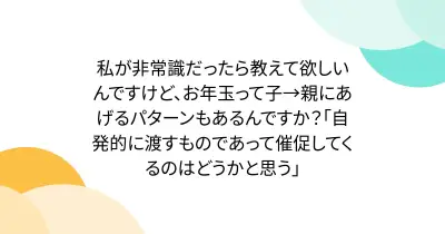 私が非常識だったら教えて欲しいんですけど、お年玉って子→親にあげるパターンもあるんですか?「自発的に渡すものであって催促してくるのはどうかと思う」