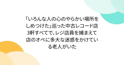 「いろんな人の心のやらかい場所をしめつけた」巡った中古レコード店3軒すべてで、レジ店員を捕まえて店のオペに多大な迷惑をかけている老人がいた