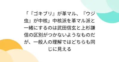 「『ゴキブリ』が革マル、『ウジ虫』が中核」中核派を革マル派と一緒にするのは武田信玄と上杉謙信の区別がつかないようなものだが、一般人の理解ではどちらも同じに見える
