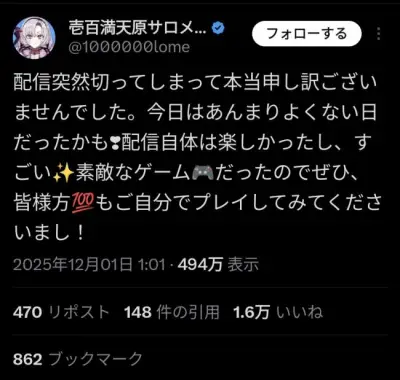 【悲報】VTuberサロメちゃん、配信を少し休んだだけで炎上