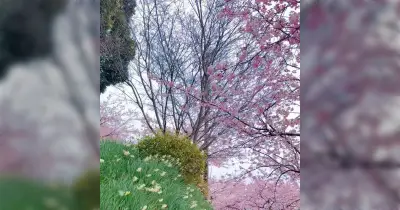 神奈川県の松田山で大雪と満開の桜のコラボがされてもはや極楽の風景、あとは月が欲しくなる