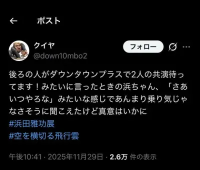 【悲報】ダウンタウンプラス、浜田の合流は絶望的へ