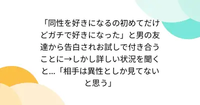 「同性を好きになるの初めてだけどガチで好きになった」と男の友達から告白されお試しで付き合うことに→しかし詳しい状況を聞くと...「相手は異性としか見てないと思う」