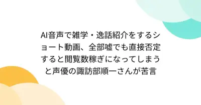 AI音声で雑学・逸話紹介をするショート動画、全部嘘でも直接否定すると閲覧数稼ぎになってしまうと声優の諏訪部順一さんが苦言