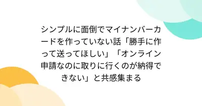 シンプルに面倒でマイナンバーカードを作っていない話「勝手に作って送ってほしい」「オンライン申請なのに取りに行くのが納得できない」と共感集まる