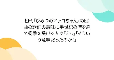 初代『ひみつのアッコちゃん』のED曲の歌詞の意味に半世紀の時を経て衝撃を受ける人々「えっ」「そういう意味だったのか!」