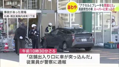 【画像】スーパーの出入口に乗用車が突っ込む「アクセルとブレーキを間違えた」