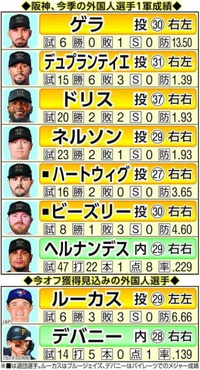 阪神の来季助っ人はドリス以外総入れ替えの可能性も デュプランティエが保留選手名簿記載なし
