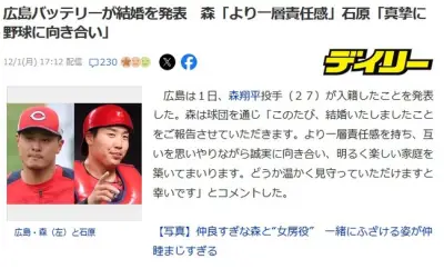 広島バッテリーが結婚を発表 森翔平投手「より一層責任感」 石原貴規捕手「真摯に野球に向き合い」