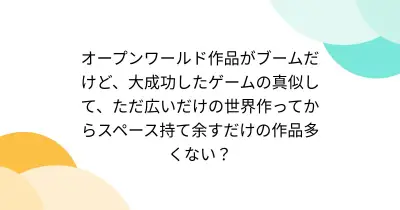 オープンワールド作品がブームだけど、大成功したゲームの真似して、ただ広いだけの世界作ってからスペース持て余すだけの作品多くない?