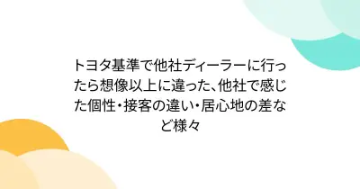 トヨタ基準で他社ディーラーに行ったら想像以上に違った、他社で感じた個性・接客の違い・居心地の差など様々