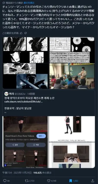 外国人「チェンソーマンはただのパクリまとめ集、、マイナーからパクってるだけ」