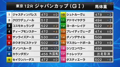 11/30(日) 第45回ジャパンカップ(GⅠ) 馬体重