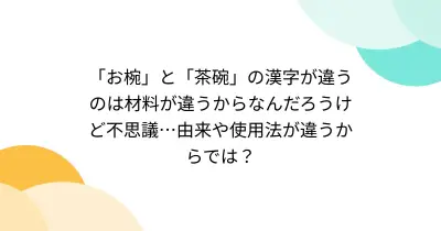 「お椀」と「茶碗」の漢字が違うのは材料が違うからなんだろうけど不思議…由来や使用法が違うからでは?