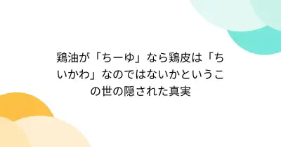 鶏油が「ちーゆ」なら鶏皮は「ちいかわ」なのではないかというこの世の隠された真実