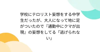 学校にテロリスト妄想をする中学生だったが、大人になって地に足がついたので『通勤中にクマが出現』の妄想をしてる「逃げられない」