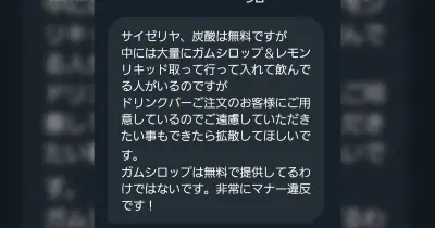 サイゼリヤの炭酸水は無料だがガムシロップやレモンポーションなどは有料なので勝手に使うと泥棒になってしまう