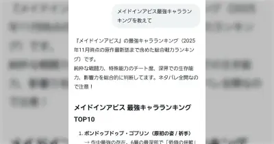 AIに「メイドインアビス最強キャラランキングを教えて」と言ったら、1位に知らない人がでてきた… マジで誰?「発音しにくそう」「笑いすぎて腹筋痛い」