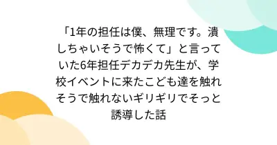 「1年の担任は僕、無理です。潰しちゃいそうで怖くて」と言っていた6年担任デカデカ先生が、学校イベントに来たこども達を触れそうで触れないギリギリでそっと誘導した話