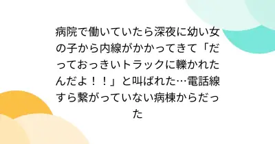 病院で働いていたら深夜に幼い女の子から内線がかかってきて「だっておっきいトラックに轢かれたんだよ!!」と叫ばれた…電話線すら繋がっていない病棟からだった