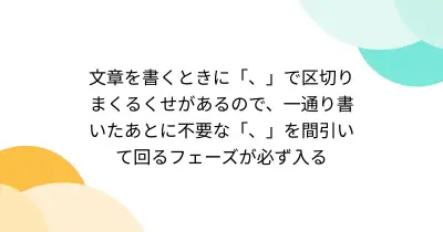 文章を書くときに「、」で区切りまくるくせがあるので、一通り書いたあとに不要な「、」を間引いて回るフェーズが必ず入る