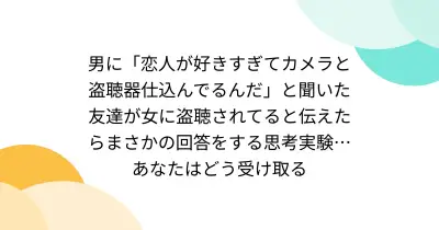 男に「恋人が好きすぎてカメラと盗聴器仕込んでるんだ」と聞いた友達が女に盗聴されてると伝えたらまさかの回答をする思考実験…あなたはどう受け取る