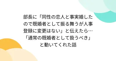 部長に「同性の恋人と事実婚したので既婚者として振る舞うが人事登録に変更はない」と伝えたら…「通常の既婚者として扱うべき」と動いてくれた話