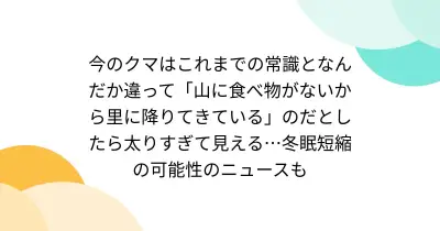 今のクマはこれまでの常識となんだか違って「山に食べ物がないから里に降りてきている」のだとしたら太りすぎて見える…冬眠短縮の可能性のニュースも