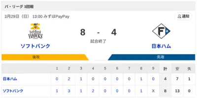 【試合結果】ホークス開幕3連勝!!!!!!!