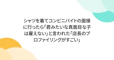 シャツを着てコンビニバイトの面接に行ったら「君みたいな真面目な子は雇えない」と言われた「店長のプロファイリングがすごい」
