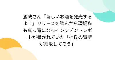 酒蔵さん『新しいお酒を発売するよ!』リリースを読んだら現場猫も真っ青になるインシデントレポートが書かれていた「杜氏の胃壁が霧散してそう」