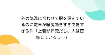 外の気温に合わせて服を選んでいるのに電車が暖房効きすぎで暑すぎる件「上着が邪魔だし、人は密集しているし…」