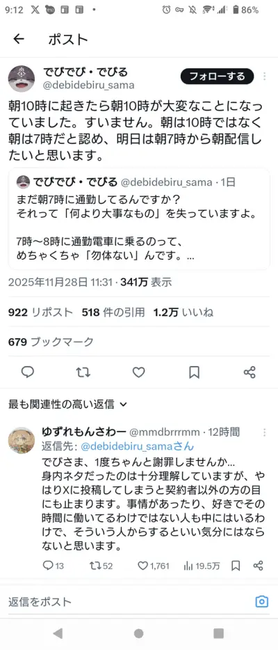 【悲報】VTuber「朝7時通勤は大事なものを失ってる」発言で炎上 ←正直“朝7時通勤で心がすり減る”のは事実だよな