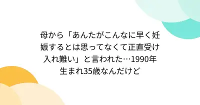 母から「あんたがこんなに早く妊娠するとは思ってなくて正直受け入れ難い」と言われた…1990年生まれ35歳なんだけど