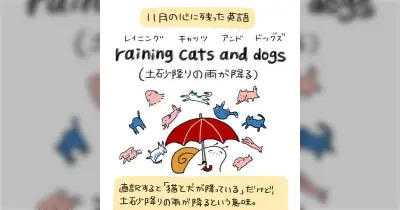 どしゃ降りの雨を「猫と犬が降っている」と言う英語表現を知って、様子を想像したら雨の日も嬉しくなりそう