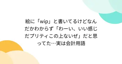 絵に「wip」と書いてるけどなんだかわからず「わーい、いい感じだプリティこの上ないぜ」だと思ってた…実は会計用語