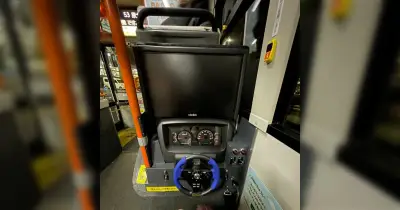 バスに乗ったら本格的な運転席みたいな席があった…ドア開閉スイッチやメイン起動スイッチに空気圧のタコメーターも再現されててガチ