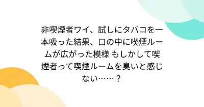 非喫煙者ワイ、試しにタバコを一本吸った結果、口の中に喫煙ルームが広がった模様 もしかして喫煙者って喫煙ルームを臭いと感じない……?