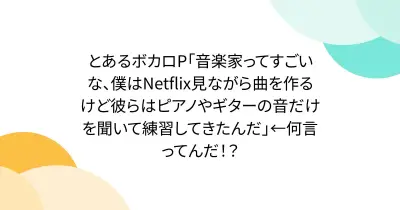とあるボカロP「音楽家ってすごいな、僕はNetflix見ながら曲を作るけど彼らはピアノやギターの音だけを聞いて練習してきたんだ」←何言ってんだ!?